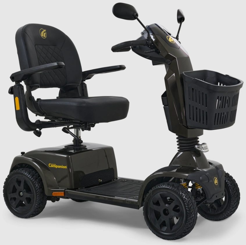 The Companion 4-Wheel Scooter (Model GC440) by Golden represents the pinnacle of comfort, style, and rugged dependability in a full-time, yet portable, mobility solution. This next-generation scooter is equipped with a range of upgraded features, making it one of the most advanced options available. With a weight capacity of 400 lbs, the GC440 is engineered to support a wide array of users while offering the most leg and foot room in its class. The scooter’s modern and rugged design, combined with full front and rear suspension, ensures a smooth and comfortable ride on various terrains.