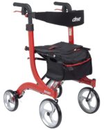 The Drive Nitro Rollator in Tall Red is specifically designed for users 6 feet and above, providing a perfect blend of style, safety, and functionality. With a lightweight aluminum frame, this rollator weighs just 18 lbs and features large 10″ front wheels for smooth maneuverability on various terrains. The ergonomic handles are adjustable from 36″ to 41″ in height, while the seat offers comfort with an 18″ width between handles. The rollator’s compact, foldable design makes it easy to store and transport, ensuring convenience wherever you go.