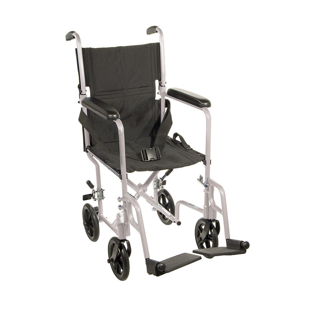 The Drive Transport Chair 19″ (Model ATC19-BL) is a reliable and lightweight transport chair, perfect for safe and easy patient mobility. Weighing just 19 lbs, it features a durable aluminum frame, maintenance-free 8″ composite wheels, and swing-away footrests for convenience. The chair also includes a seat belt for added safety and padded armrests for extra comfort. The backrest folds down for easy storage and transport.