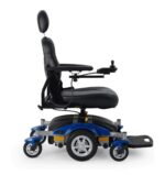 The Golden Technologies Compass Sport GP605 is a versatile power wheelchair designed for both indoor and outdoor maneuverability. Featuring a sleek, sporty design, it comes with durable color-injected plastic shrouds in red or blue. The Compass Sport offers comfortable seating options with widths from 16” to 22”, all featuring a luxury high-back Captain’s style seat with a headrest. Equipped with the Dynamic LiNX controller, it provides an enhanced driving experience with improved terrain handling and a top speed of 4 mph.